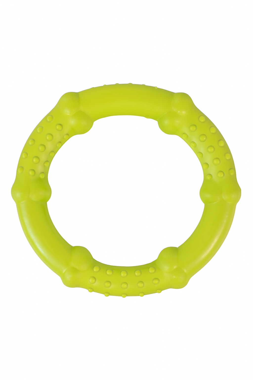 Rugalmas TPR anyagból készült kör alakú kutyajáték, amely ideális választás rágási ösztön kielégítésére és fogápolásra. A csont formájú kiemelések és a domború bütykök masszírozzák az ínyt, miközben tartós és biztonságos játékélményt nyújtanak. Beltéri és kültéri használatra egyaránt alkalmas.